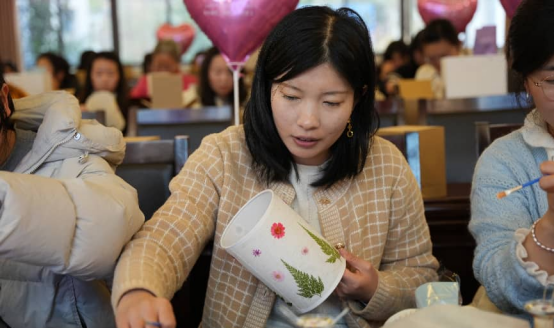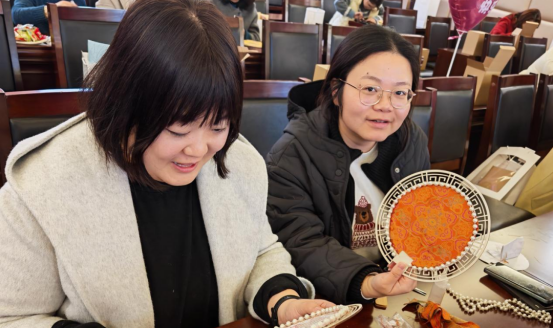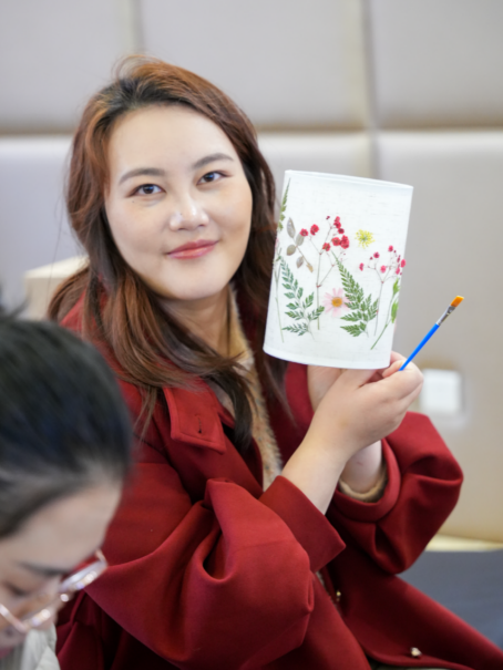 随后进行的压花台灯与宋锦珍珠扇手工DIY活动,充分点燃了大家的热情。在手工老师的指导下,大家精心挑选干花素材,巧妙构思布局,将自然之美定格于灯罩之上,制作出独具个人审美的压花台灯。在宋锦珍珠扇制作区,女教职工们细致穿珠、拼接、装饰,在指尖流转中感受非物质文化遗产宋锦的典雅魅力,一把把融合古典韵味与现代美感的精美团扇相继完成,现场欢声笑语不断。