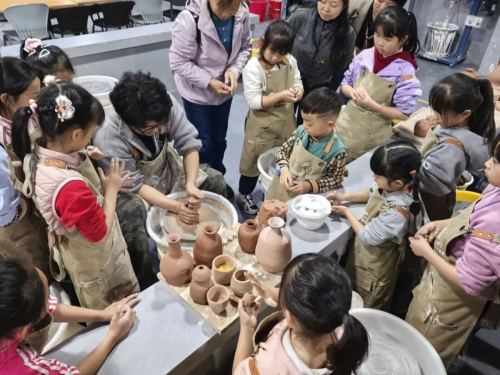 除特色参观体验外,学校还同步开展了烘焙、陶艺、舞蹈、手工DIY等体验课程。润园烘焙室里,孩子们系上小围裙,揉面团、做造型,奶香与笑声交织。博雅美术馆内,陶艺体验有序开展,揉泥、拉坯、塑形,指尖流转间感受传统工艺之美。在图书馆,街舞、爵士舞课堂活力满满,动感节拍点燃纯真童心……